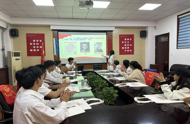 宣讲团成员在指导老师陈盼盼的带领下,对遵义会议进行了全面学习,并对宣讲课件展开详细备课,每位团队成员均具备独立宣讲能力,共面向全校9个公司以及通济街道、马尚街道等开展巡回宣讲。