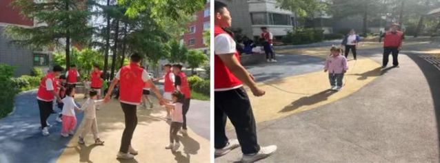 在每周的周六上午,志愿者们都会出现在社区中,开展一系列社区志愿服务活动,如社区环境清扫、篮球公益课堂、踢键子扔沙包等活动。