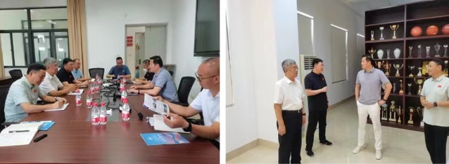 在舒华体育股份有限公司,邓昌亮一行受到了舒华体育高层的热情接待。在战略中心总监林德添陪同下一同观看了舒华体育的宣传片,并参观了舒华体育的产品展厅和研发中心,深入了解了企业的生产经营和科技创新情况。