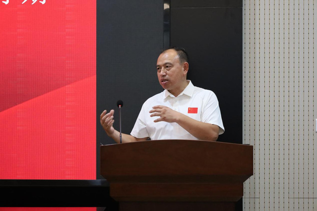 曹绪亮做动员讲话,他提到,一是他传授了如何快速适应实习环境,如何正确的与同事之间沟通交流,与指导教师相互配合顺利完成实习工作;二是要珍惜当下的实习机会,为毕业迈向工作岗位提前积累经验宝贵;三是希望全体实习生时刻保持良好的精神风貌,维护公司公司的良好形象,弘扬“出彩体育人”精神,并祝愿全体实习生实习顺利。