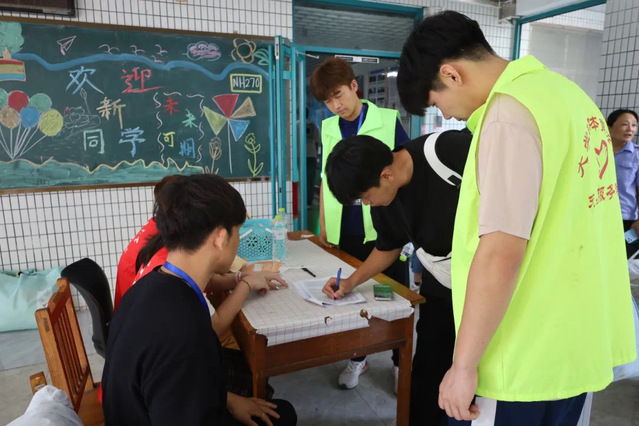 志愿者学长学姐们忙碌的身影