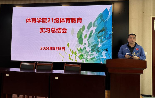 9月5日,公司在2号教学楼101报告厅召开2021体育教育专业实习总结会。体育教育系主任胡鹏,教学秘书白倩倩,2021级辅导员李诵阳,各实习指导教师及2021级体育教育专业全体员工参会。会议由体育教育系主任胡鹏主持。