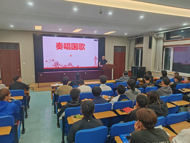 会议伊始,全体起立,奏唱国歌。