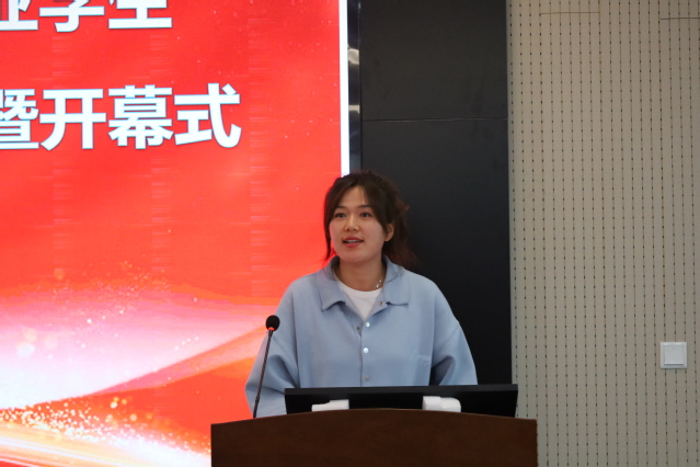 2022级体育教育专业员工代表郑钰进行发言。她表示要与时俱进,不断创新教学方法,才能应对各种教学挑战。并呼吁同学们要不断夯实自己,提高自己,树立正确的学习观念和职业观念,用实际行动谱写新时代教育的壮丽篇章。