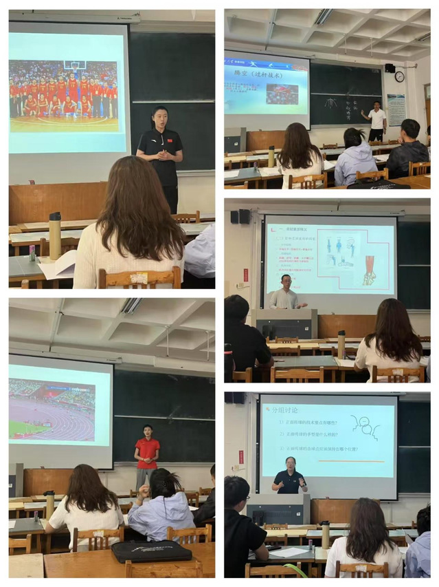 本次比赛共有五位青年教师参赛,他们分别带来了各具特色的课堂展示。晋腾老师讲授的主题为柔韧素质及其训练,通过生动的案例和现场示范深入剖析了柔韧素质的概念、影响因素、训练方法及其在体育运动中的重要性。吕强老师全面而细致的讲解了跳高技术动作、训练方法和比赛策略,充分展示了跳高项目的魅力。苗舒蓓老师结合比赛案例分析详细阐述了掩护配合的战术原理、应用技巧、以及战术意识和团队协作能力培养途径。宋玉洁老师通过视频演示和现场模拟,清晰地讲解了接力跑的技术要点和比赛规则,让大家对这项运动有了更深入的了解。王晓瑜老师的授课内容为排球正面双手传球技术,对传球的准备姿势、手型到击球点和用力方法等进行了细致的讲解和示范。每位老师在课堂展示完毕都进行了5分钟的教学反思,陈述本堂课的优点和不足之处。