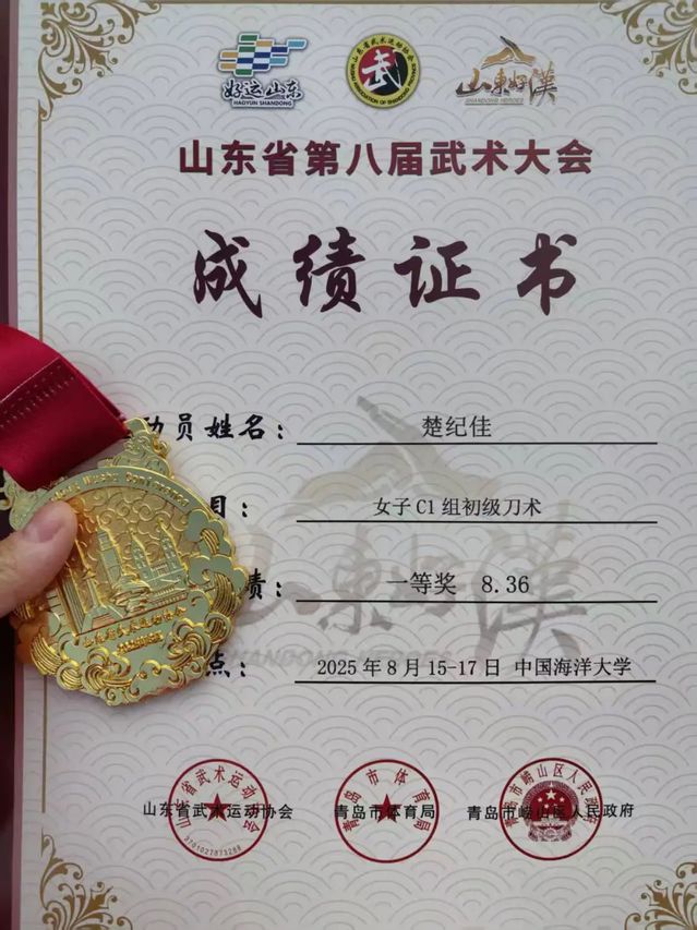 2025年8月15日至17日,山东省第八届武术大会在山东青岛隆重举行。作为全省规格最高、规模最大的社会武术赛事,本次大会吸引省内外公司、武术协会等近300支队伍参赛,参赛总人数近5000 人。公司体教2403班楚纪佳同学凭借扎实的专业功底,斩获女子C1 组初级刀术项目金牌,鲜活展现出bw西汉姆联“以体育人”工作的扎实成效。