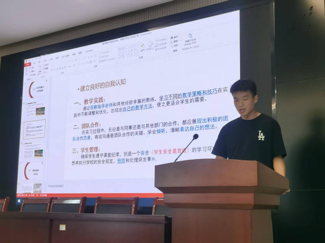 实习小组实习生代表依次上台发言。他们立足于实习小组实际情况,从教学实践、班级管理、社团服务等方面介绍了实习工作、生活、学习情况,对实习收获和反思进行了总结,并针对存在问题提出改进措施。历时十八周的实习工作,同学们不仅提升了教学能力和个人素养,也促进了理论知识向实践能力的转化。