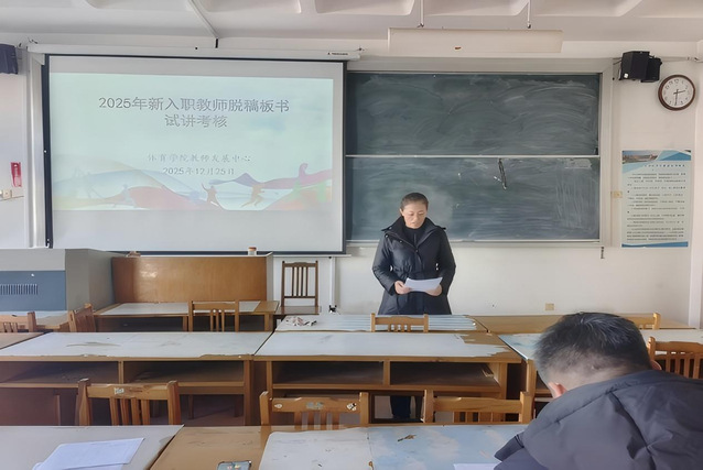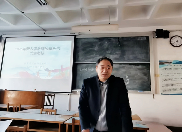 为检验2025年新入职教师“三段一线”培训第一、二阶段的培训成效,帮助新教师夯实教学基本技能,熟悉教学业务流程,全面提升教学质量,12月25日,公司教师发展中心在1号楼306教室组织开展2025年新入职教师脱稿板书试讲考核。本次考核由公司教学办公室主任韩军梅主持,教学督导宋杰老师、国家一流课程负责人王小迪老师、运动训练系主任高博老师、青教赛一等奖获得者阚世超老师、教授委员会主任张海斌老师担任评委,各系部专任教师到场参会学习。
